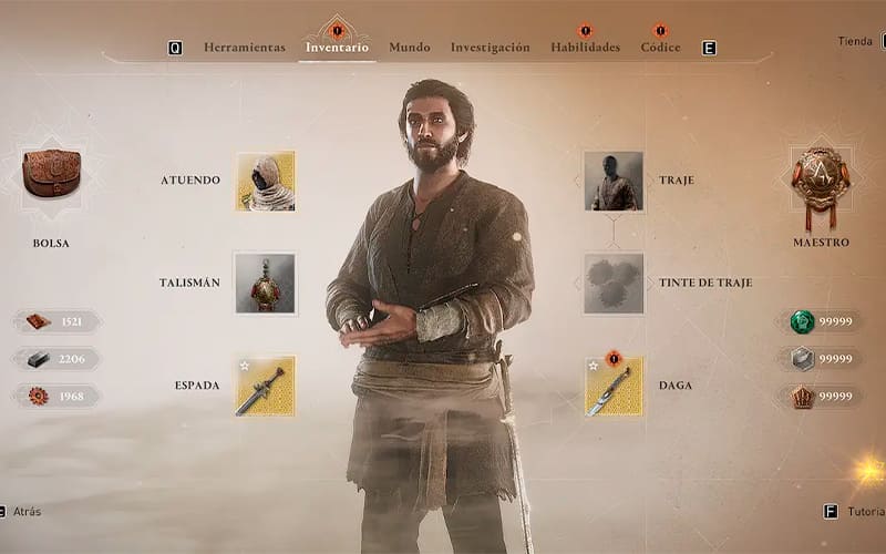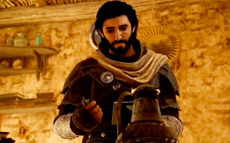 Traje de Astrólogo: Este traje va a ser el último que consigas en las misiones principales del DLC, aunque a diferencia de los otros, tiene truquito. Durante la última misión de Valley of Memory, vas a tener que infiltrarte en una fortaleza y buscar a un personaje determinado (no lo vamos a mencionar para no hacer spoilers). En este punto, una de las opciones para infiltrarse es robarle el traje a un astrólogo que pulula por el fuerte. Para conseguirlo, vas a tener que noquear al hombre y esconderlo en un fardo de heno. Una vez que lo hagas, Basim va a salir vestido con sus vestimentas para poder infiltrarse. Salvo la infiltración en la misión principal mencionada, no otorga bonificaciones.